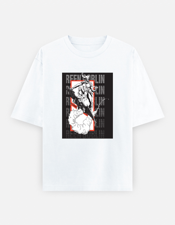 This oversized tee is elevated with a bold monochrome Goblin illustration framed in neon red, crafted for edgy streetwear lovers. Minimal base with striking anime-inspired graphics.