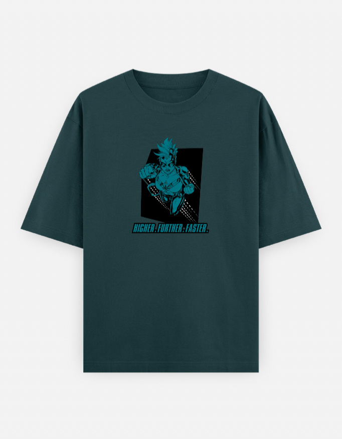 This tee blends premium cotton comfort with futuristic design. Featuring a bold monochrome superhero print in electric cyan, it channels speed, power, and modern minimalism.